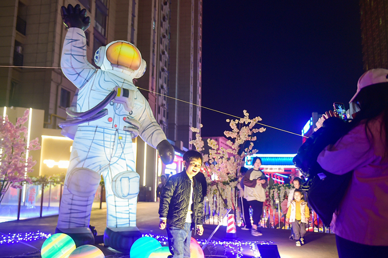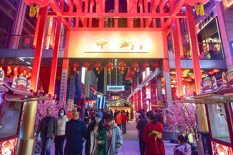 4月7日晚,游客在河南省洛陽(yáng)市瀍河區(qū)“洛城中街”文商旅綜合體街區(qū)休閑游玩。