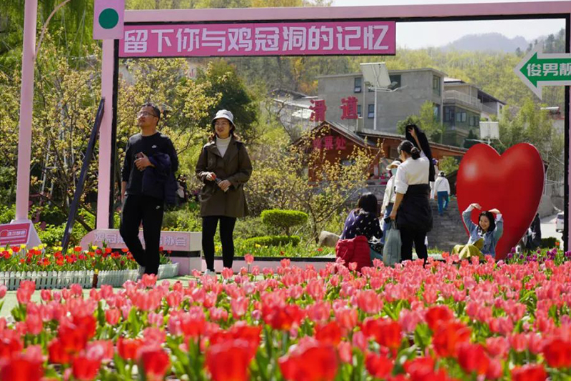 雞冠洞花海盛會(huì)不僅吸引了本地市民親子出游和攝影家采風(fēng)創(chuàng)作,還有來自洛陽、鄭州、安陽、商丘、徐州、運(yùn)城、菏澤、臨沂等30多個(gè)地市的旅行社團(tuán)隊(duì)。據(jù)統(tǒng)計(jì),4月份以來,雞冠洞游客接待量較往年同比增幅達(dá)65%。