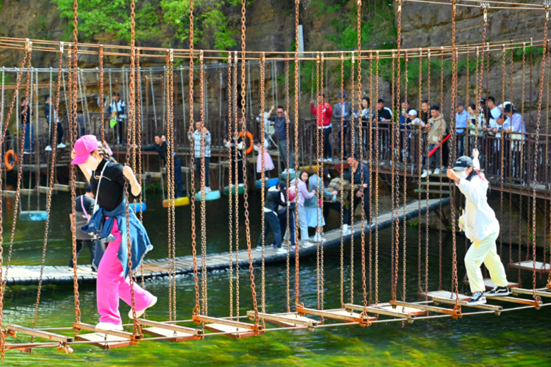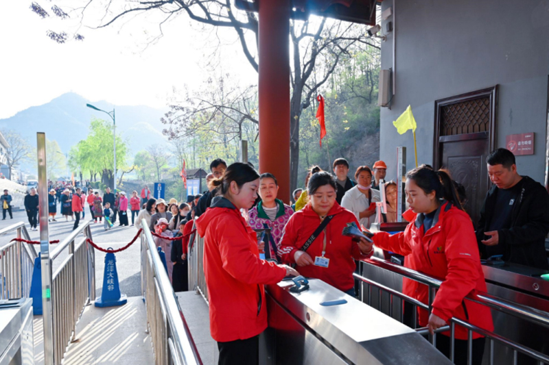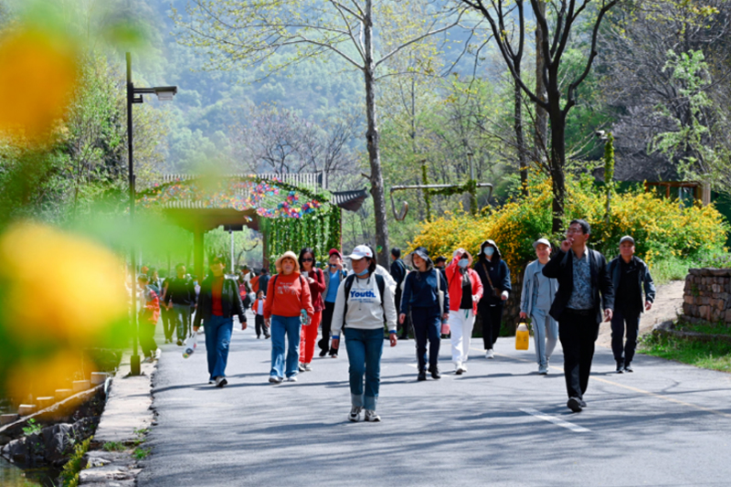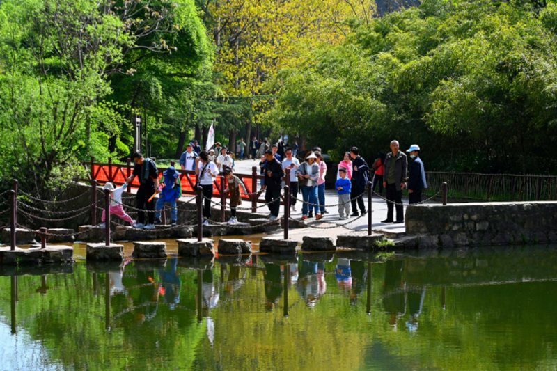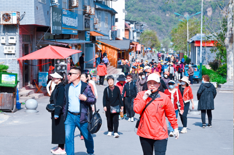 四月,正是踏青賞春好時節(jié),龍?zhí)洞髰{谷景區(qū)游人如織。