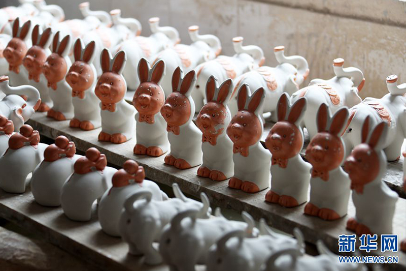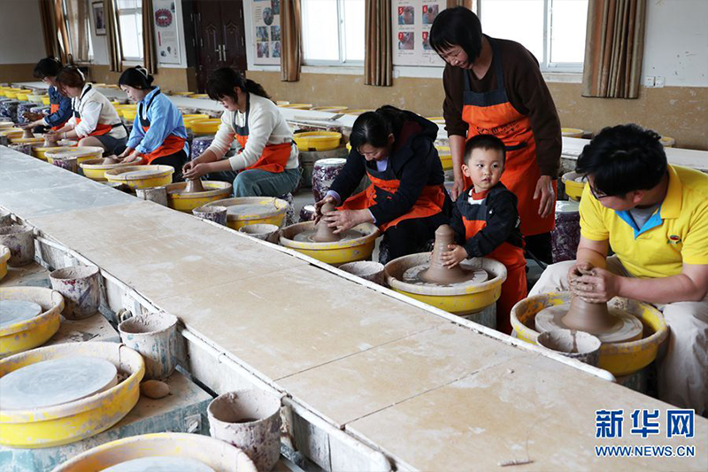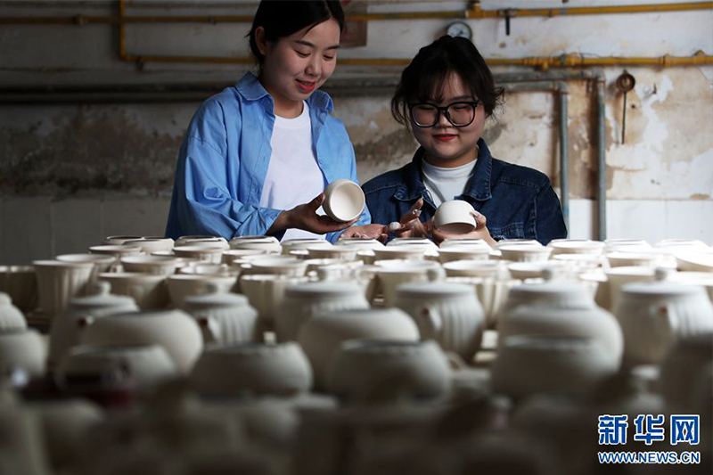 4月12日,在河南省禹州市神垕古鎮(zhèn)坪山鈞窯,員工在檢查準(zhǔn)備素?zé)拟x瓷旅游產(chǎn)品。