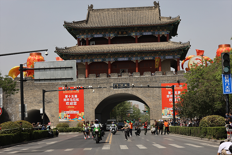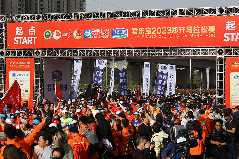 4月16日8點(diǎn)30分,2023鄭開馬拉松賽在鄭東新區(qū)鄭開大道白沙服務(wù)區(qū)鳴槍開跑,終點(diǎn)為開封市龍亭公園。圖為比賽現(xiàn)場(chǎng)。