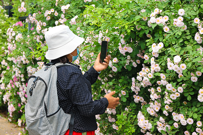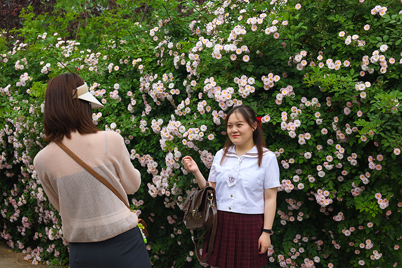 近日,開封市區(qū)多條道路上的薔薇花爭(zhēng)相盛放,吸引市民、游客前去打卡拍照。白色、粉白、玫紅,千枝萬枝,朵朵小花綴滿枝頭,營(yíng)造出生意盎然的春意。