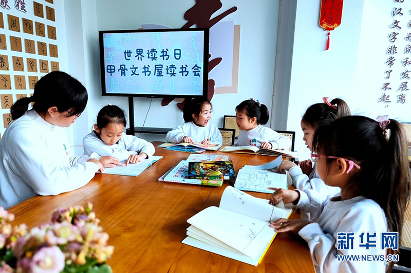 進入4月份以來,河南省安陽市殷都區(qū)選取8個甲骨文書屋,持續(xù)開展“世界讀書日 ——甲骨文書屋讀書會”主題活動,吸引市民走進書屋,一起品讀甲骨文、國學、名著、童話等經(jīng)典書籍。(炎富玲 冀業(yè) 攝)