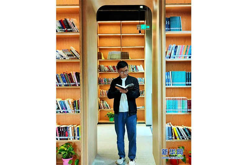近日,安陽市殷都區(qū)廣益小鎮(zhèn)甲骨文書屋,一名市民在閱讀圖書。