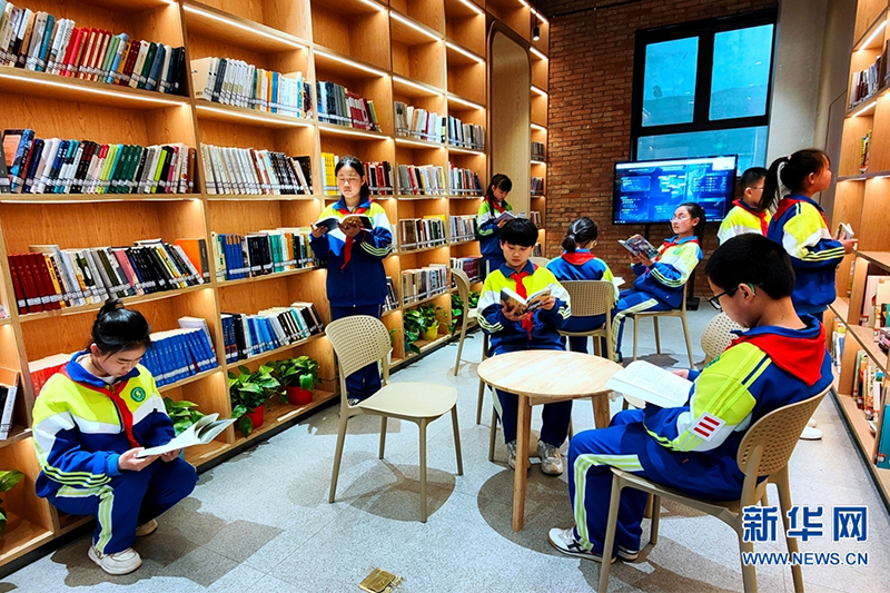 近日,安陽市六十三中學甲骨文書屋,學生在讀書。