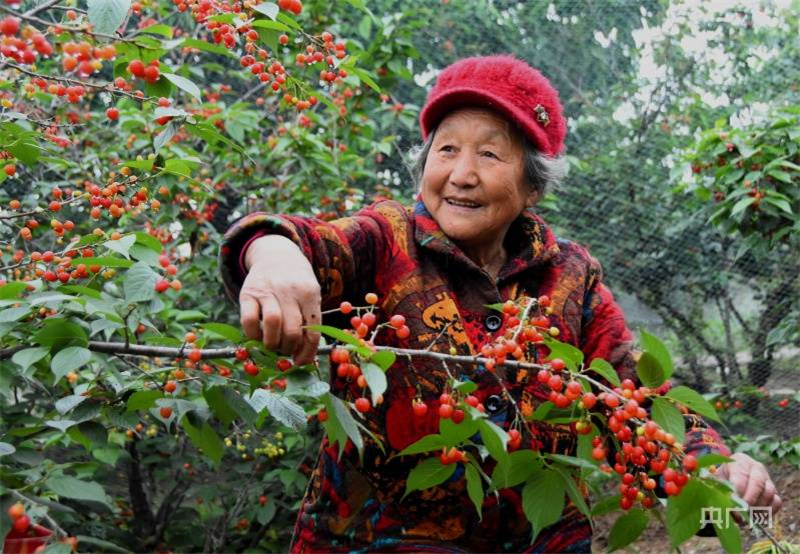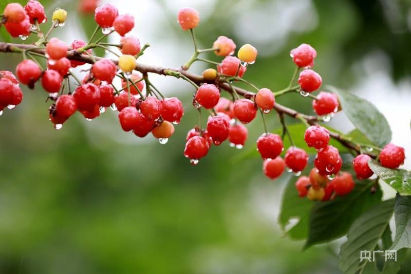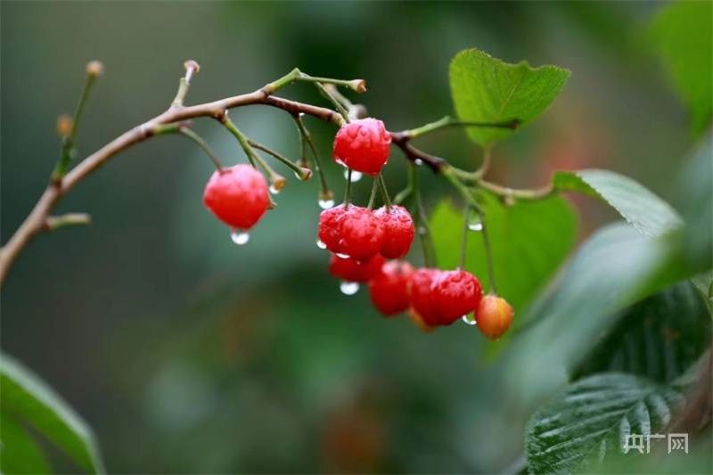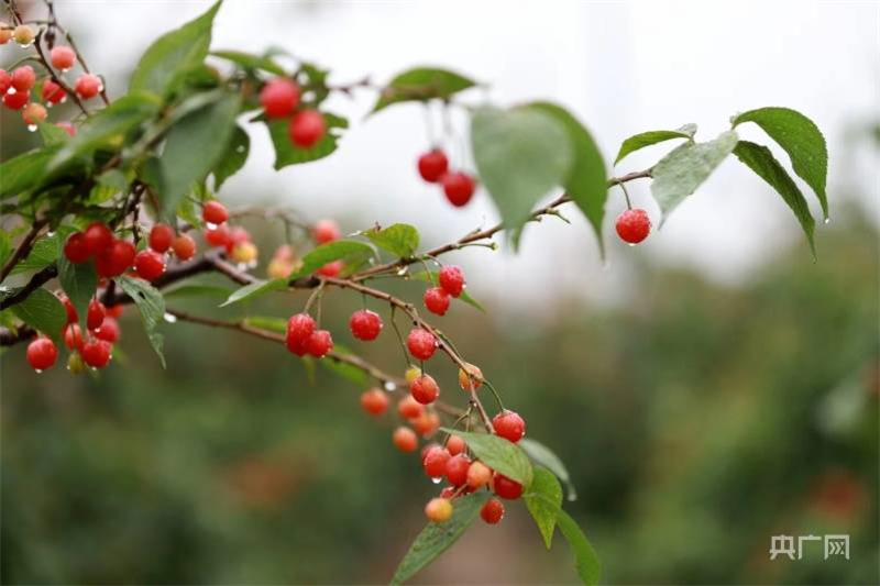 兩岸春光正好,兩千畝櫻桃陸續(xù)成熟,萬綠叢中,點點緋紅(央廣網(wǎng)發(fā) 杜欣 攝)