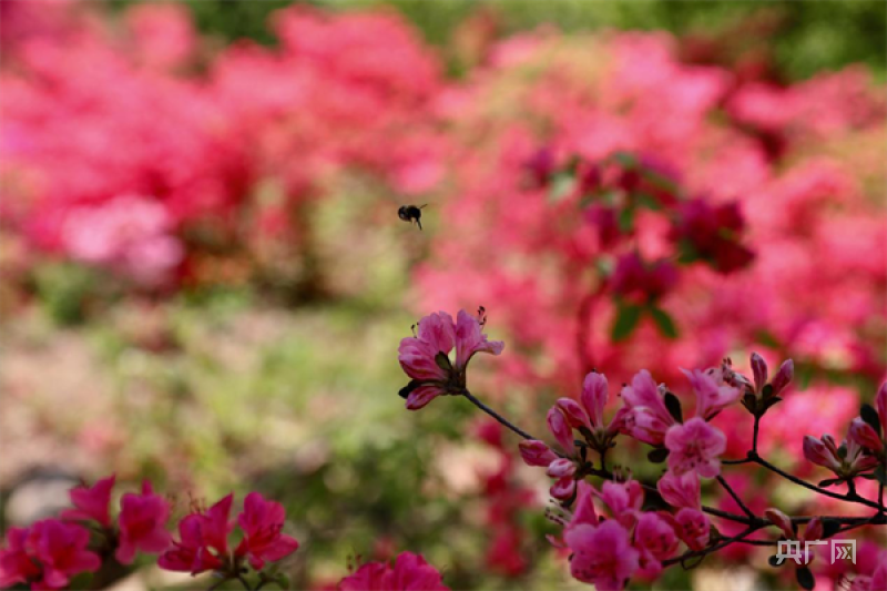 小蜜蜂“打卡”映山紅