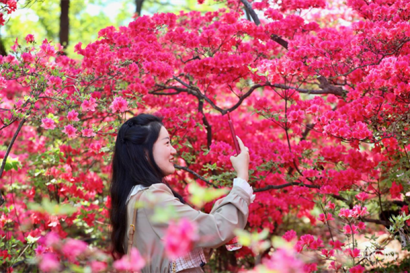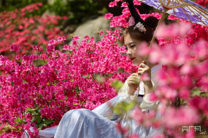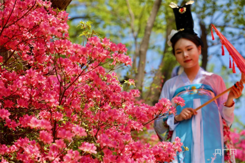 漢服愛好者打卡映山紅花海