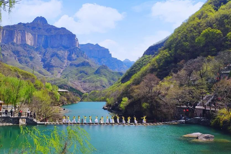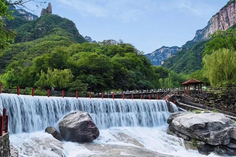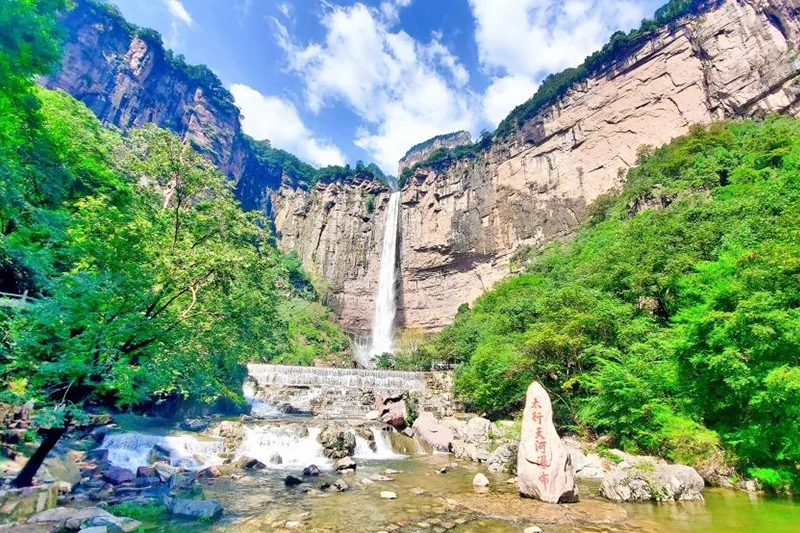 景區(qū)薈萃了太行山水之精華,紅巖絕壁橫亙百里,跌瀑碧潭連綿不絕,道教和民俗文化相得益彰。