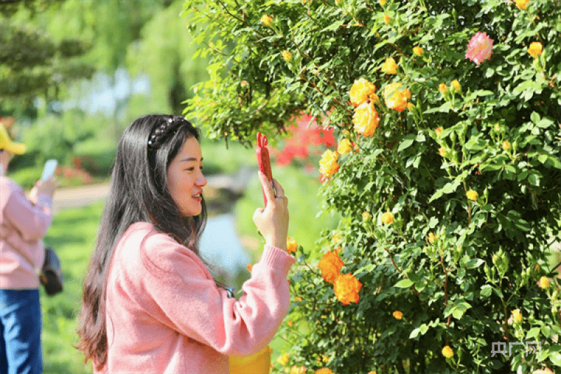 游客在月季花前駐足拍照(央廣網發(fā) 程海舟 攝)