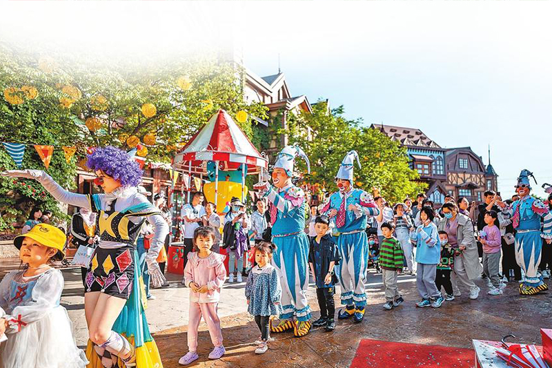 4月30日,鄭州方特旅游度假區(qū)游人如織,秩序井然。景區(qū)推出的篝火狂歡派對(duì)、動(dòng)漫嘉賓見(jiàn)面會(huì)、無(wú)人機(jī)表演、主題巡游等一系列精彩演出,為游客送上一場(chǎng)豐富多彩的文旅“大餐”。本報(bào)記者 聶冬晗 攝