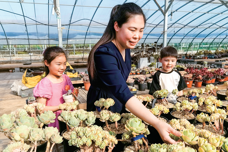 5月2日,游客在長垣市蘆崗鄉(xiāng)雙廟村花間蒔多肉植物農(nóng)場挑選多肉;ㄩg蒔多肉植物農(nóng)場是全省最大多肉種植基地之一,五一假期,不少游客前來購買多肉。本報記者 趙博 攝