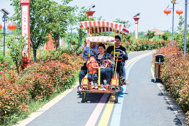 5月2日,游客在光山縣孫鐵鋪鎮(zhèn)陳大灣村朱樓村民組景區(qū)乘坐觀光小火車游玩。五一假期,光山縣鄉(xiāng)村游十分火爆,逛鄉(xiāng)村公園,體驗干農(nóng)活、觀農(nóng)景等田園活動深受游人喜愛。謝萬柏 攝