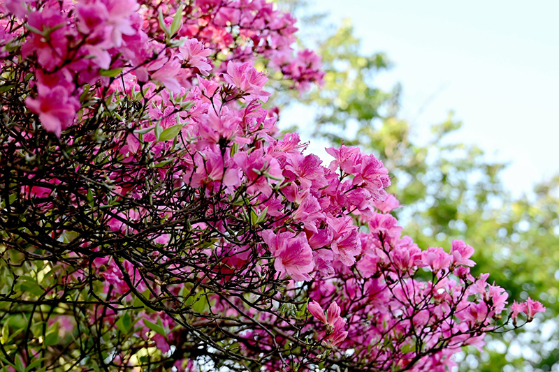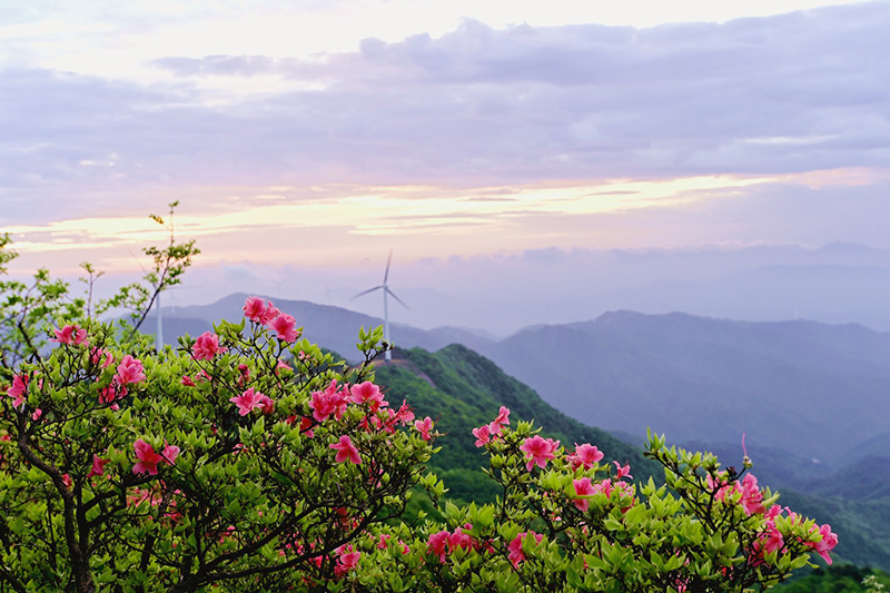 暮春時(shí)節(jié),位于大別山新縣境內(nèi)的黃毛尖山峰上,千畝杜鵑迎風(fēng)搖曳,花開正艷,鮮艷花姿為即將謝幕的春日時(shí)光描下收官之筆。
