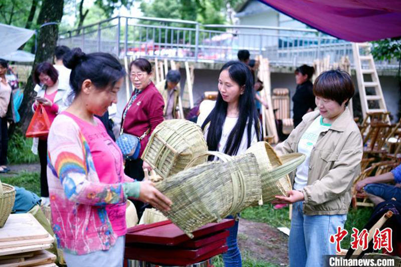5月4日,河南省新縣舉辦“非遺大市集”,鄂豫皖三省鄰界縣的千余名客商云集于此,人員日流量達(dá)兩萬(wàn)余人。在大市集上,民間非遺手工制品備受青睞。圖為游客在挑選案板。