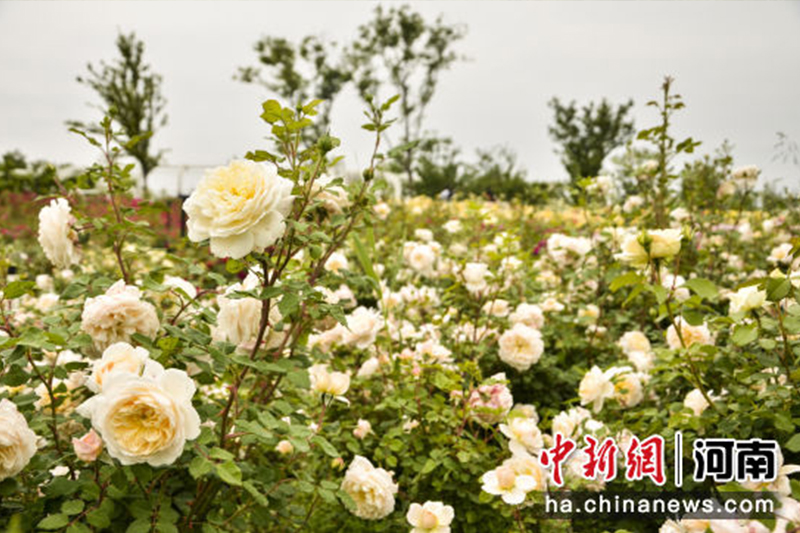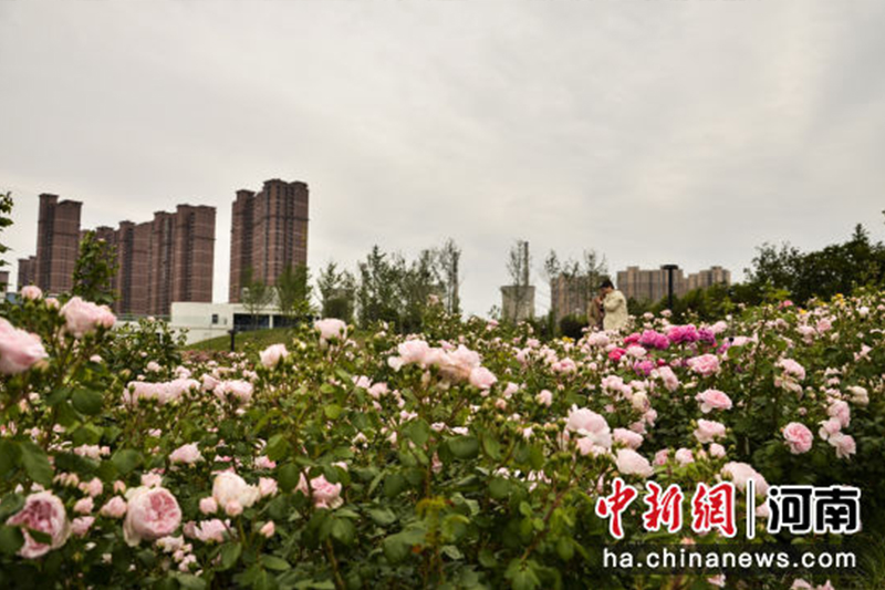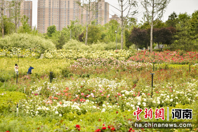 5月6日,在鄭州市西流湖公園,五彩繽紛的月季花競(jìng)相綻放,形成壯觀的月季花海,吸引不少市民前往打卡。