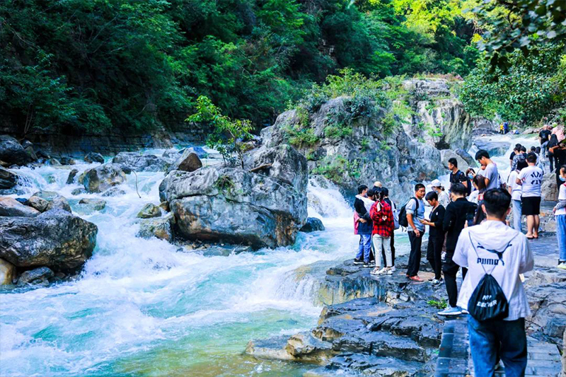 黃龍瀑、首龍瀑、九疊瀑、丫字瀑、水簾瀑......大大小小的瀑布飛流直下,化作“白”練,銀珠飛濺。