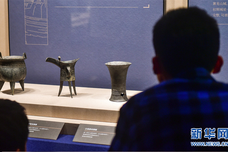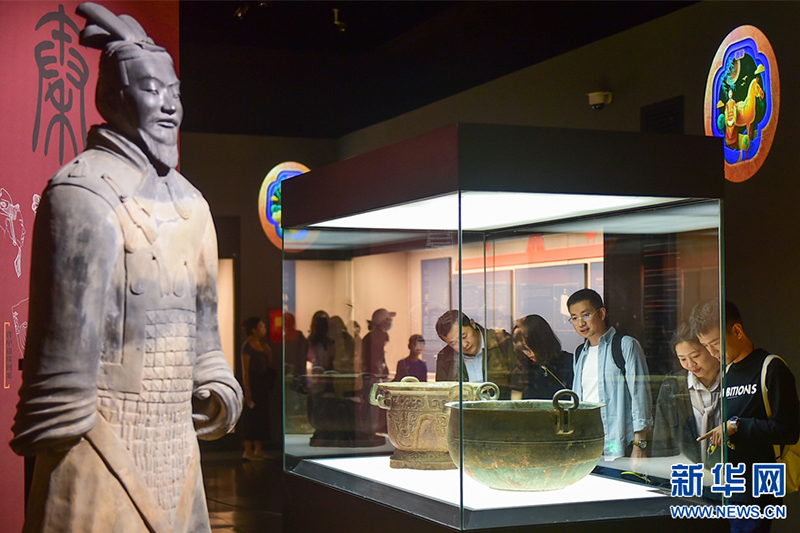 5月7日,游客在觀看“八大古都文物特展”上展出的文物。