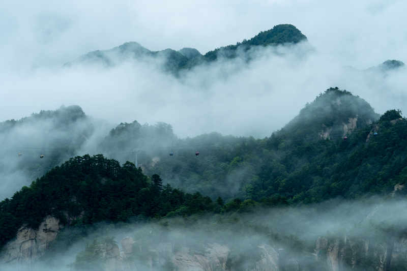 趁著雨后登峰巔,白茫茫的云海變幻莫測,風(fēng)吹云蕩,起伏不定,如同置身仙境一般。