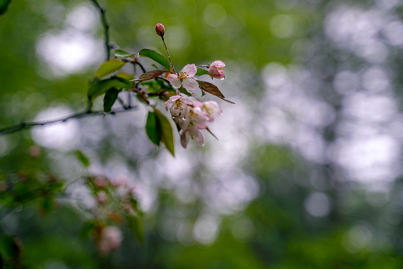 近處的花草樹木,在雨水的洗禮下更加鮮艷。