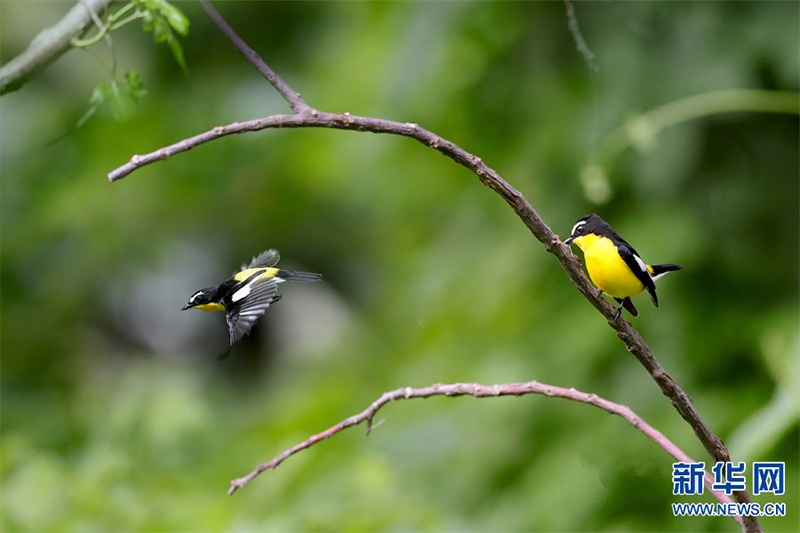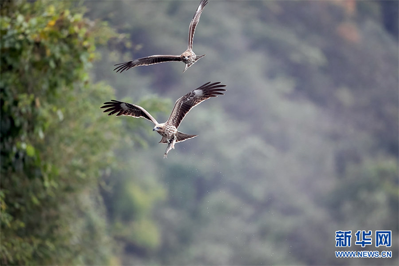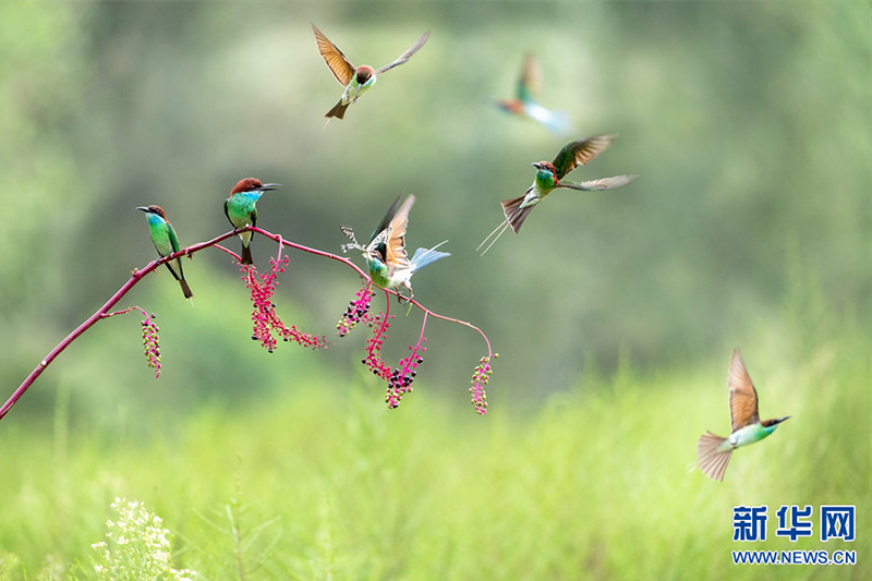 河南省信陽市新縣位于南北氣候過渡帶,地跨長江、淮河兩大流域,植被覆蓋率達(dá)95%,森林覆蓋率達(dá)76.7%。得天獨(dú)厚的自然生態(tài)環(huán)境,吸引了藍(lán)喉蜂虎、藍(lán)翡翠、戴勝等眾多鳥類在這里“安營扎寨”,繪出一幅生動(dòng)和諧的自然畫卷。白鷺在翩翩起舞