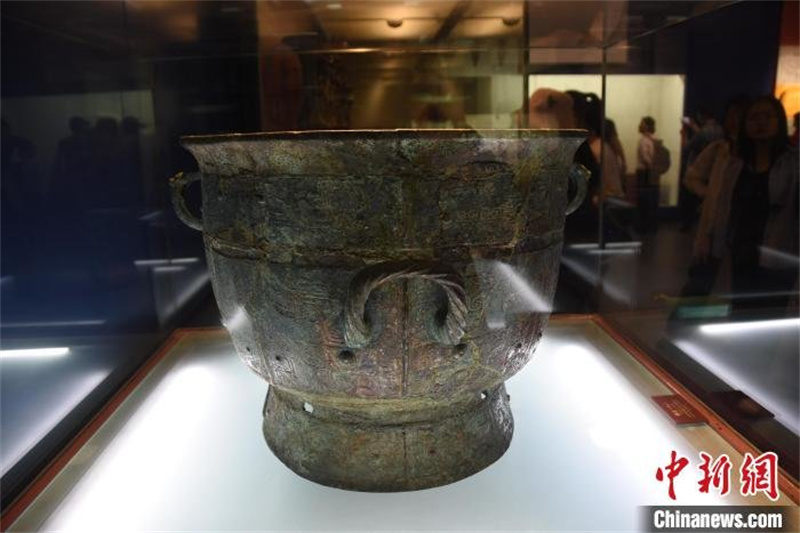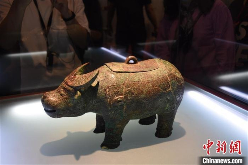 圖為殷墟博物館內(nèi)展出的青銅器——亞長牛尊。