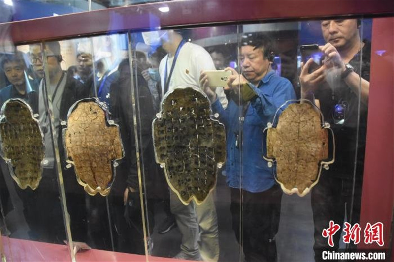 圖為殷墟出土的“刻辭卜甲”甲骨文。