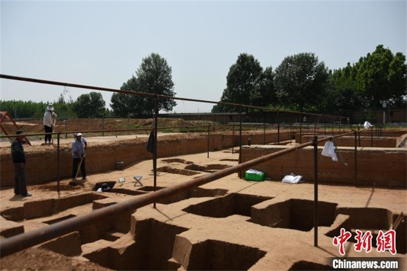 圖為殷墟王陵遺址正在發(fā)掘的商代圍溝。