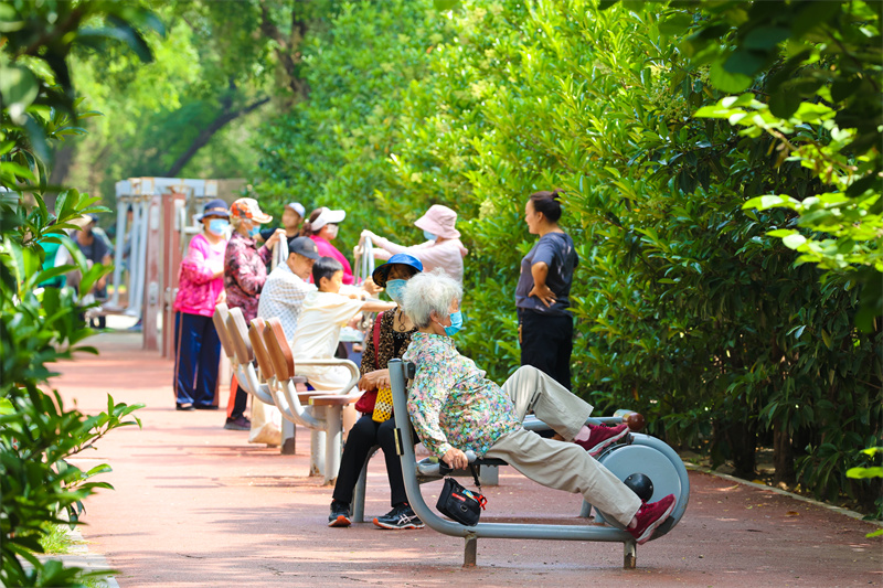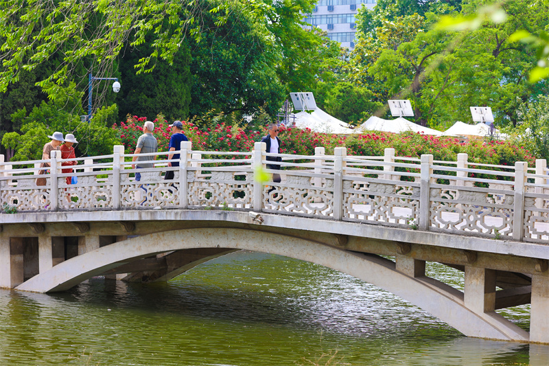 初夏時(shí)節(jié),汴京公園內(nèi)水清、樹綠、花香,風(fēng)景美如畫,是眾多市民休閑健身的好去處。