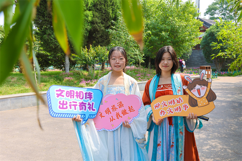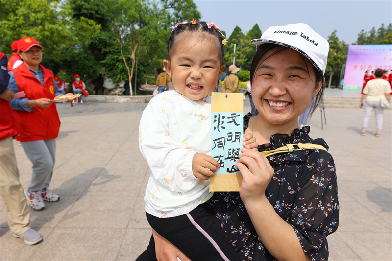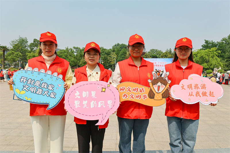 在第13個中國旅游日到來之際,為全面提升市民旅游文明程度,推動文化旅游融合,由市委宣傳部、市委市直工委主辦的“美好中國 幸福旅程”開封市2023年文明旅游志愿服務活動于5月18日上午在汴京公園舉行,活動現(xiàn)場,精彩節(jié)目引得觀眾拍手叫好,現(xiàn)場書寫贈送的書簽也深受市民喜愛;此次活動結(jié)合我市優(yōu)秀傳統(tǒng)文化資源,創(chuàng)新表達,讓文明旅游成為市民的生活方式,融入市民的幸福生活中。