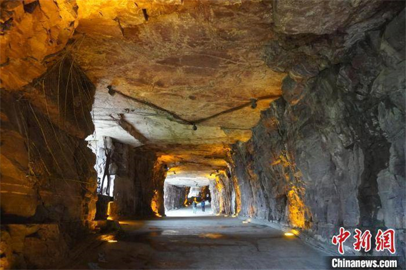 圖為郭亮村掛壁公路“郭亮洞”內(nèi)景。