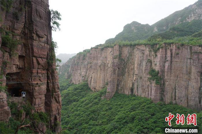 圖為鑿在太行山里的郭亮村掛壁公路“郭亮洞”。