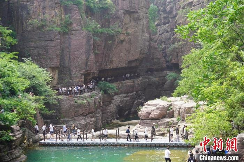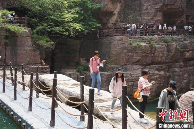 賞太行山水,品大美河川。5月20日下午,“‘太行山上看鄉(xiāng)村振興’兩岸記者豫冀行”聯(lián)合采訪團走進河南焦作云臺山世界地質(zhì)公園,近距離感受太行山水之魅力,實地了解旅游業(yè)為當(dāng)?shù)剜l(xiāng)村振興帶來的變化。兩岸媒體人走進河南焦作云臺山世界地質(zhì)公園。