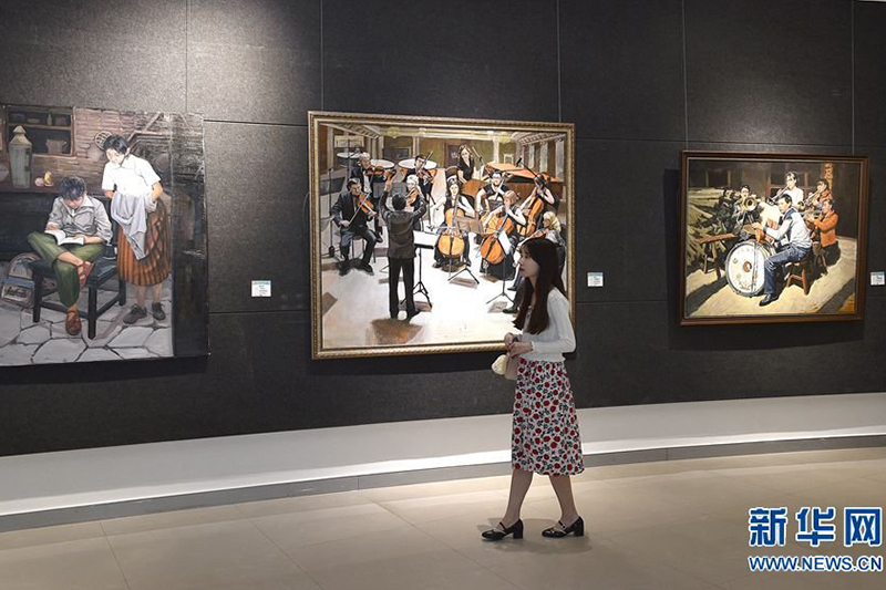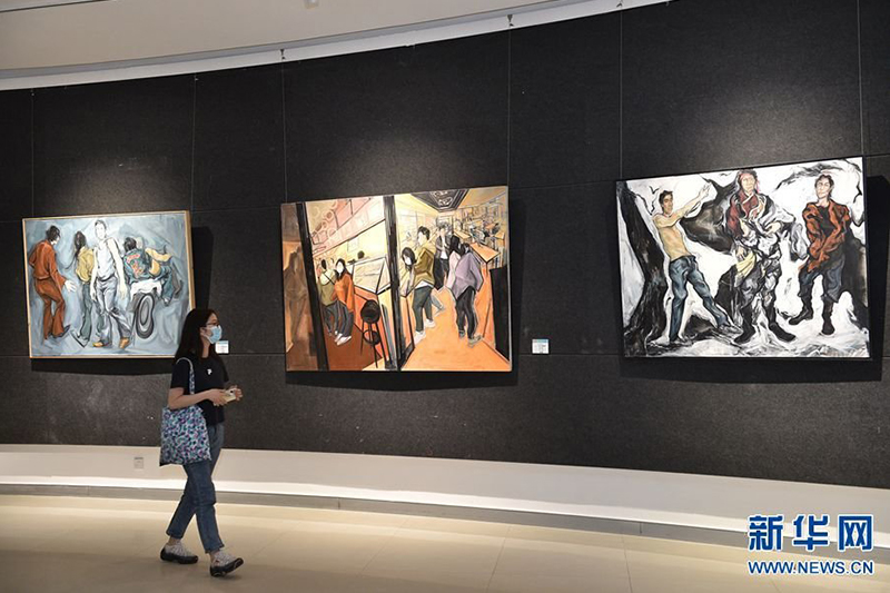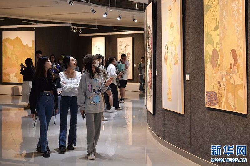 5月23日,觀眾在鄭州美術(shù)館展廳參觀。