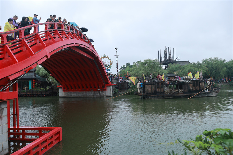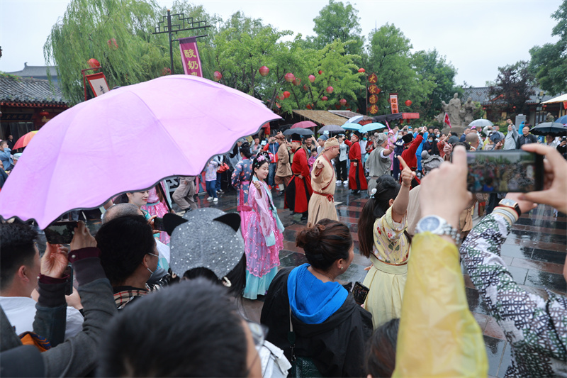 5月28日,開封細(xì)雨霏霏。各景區(qū)人頭攢動,來自各地的游客冒雨沉浸式感受宋“潮”文化,體驗古城美景。
