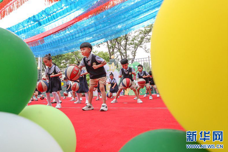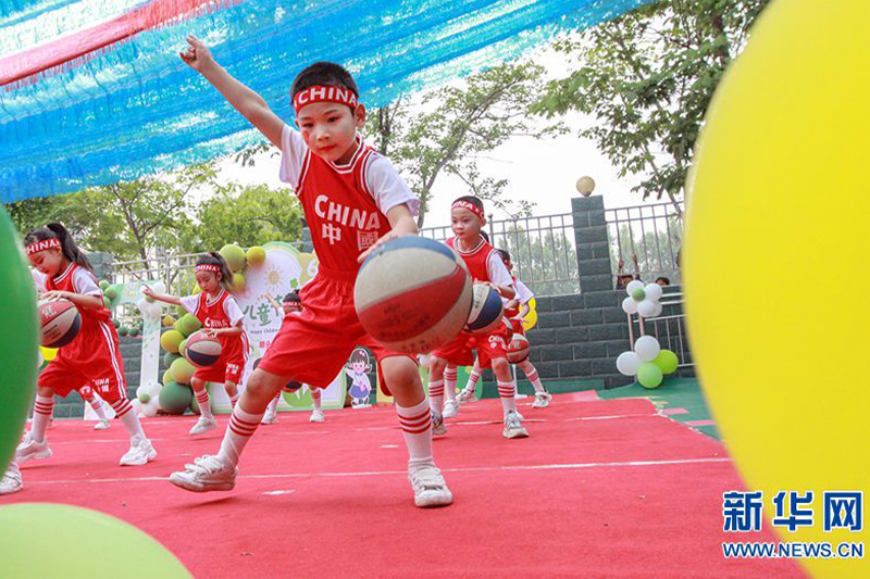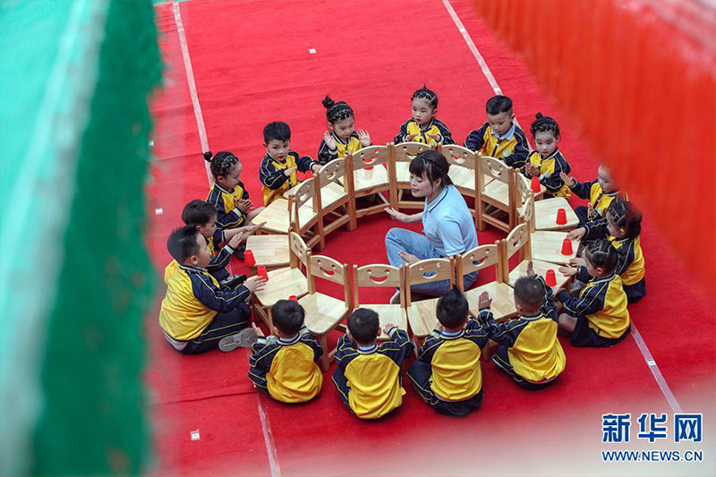 5月29日,河南省博愛縣磨頭鎮(zhèn)中心幼兒園的孩子們?cè)诒硌莨?jié)目。