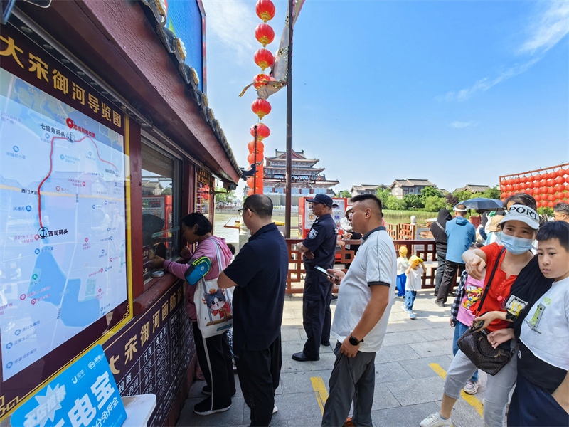 6月1日,古城“水上巴士”試運營。許多市民、游客排隊購票,體驗綠色生態(tài)公共交通。“水上巴士”運營時間為9時到18時,整點、半點發(fā)船,可在御河七盛角碼頭、御河西司碼頭、御河960碼頭乘船。