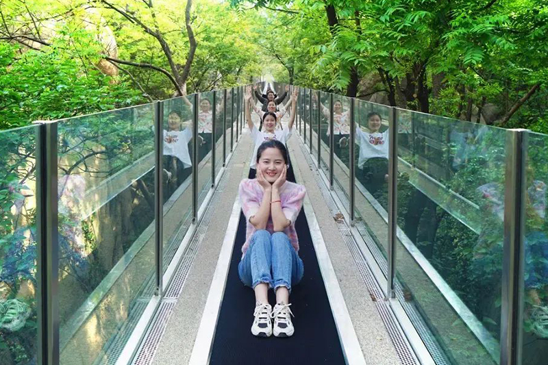 崖壁滑道全長329米,最大落差100米,連接鳳凰臺和風(fēng)水嶺,沿崖壁盤旋而下。