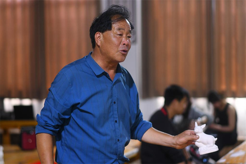 6月6日,省級(jí)美術(shù)工藝大師張二孬在南石山村的唐三彩文化研學(xué)所為學(xué)生講解施釉注意事項(xiàng)。河南省洛陽市朝陽鎮(zhèn)南石山村以生產(chǎn)唐三彩而聞名。近年來,當(dāng)?shù)卣e極引導(dǎo)三彩產(chǎn)業(yè)數(shù)字化建設(shè)工作,推動(dòng)唐三彩燒制技藝傳習(xí)館、唐三彩陶藝博物館、唐三彩文化研學(xué)所等優(yōu)化升級(jí)。目前,南石山村唐三彩產(chǎn)業(yè)的專業(yè)燒制藝人有2000余人、文化企業(yè)68家,年產(chǎn)值達(dá)3.5億元。