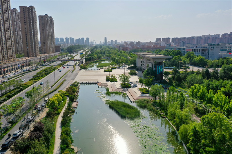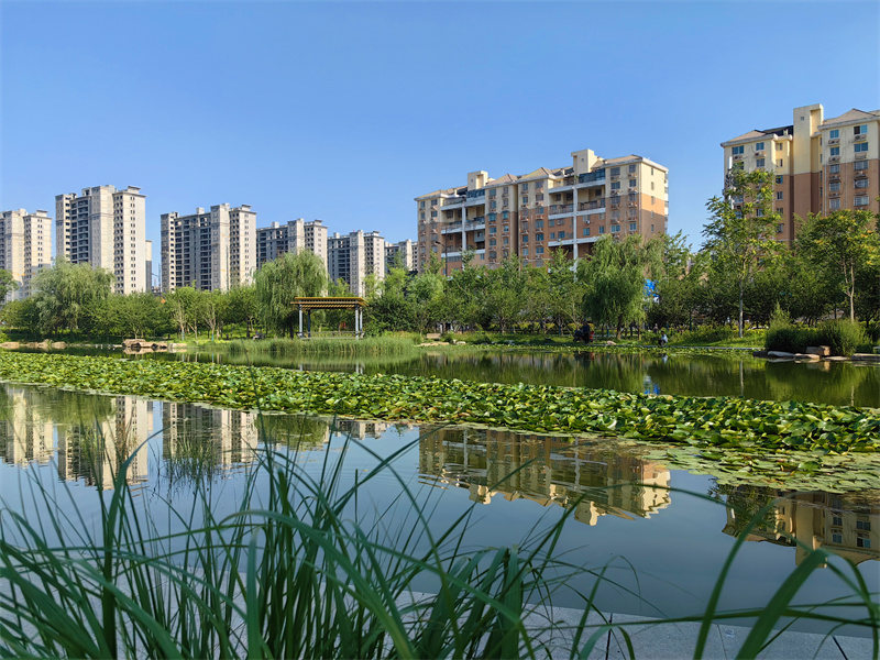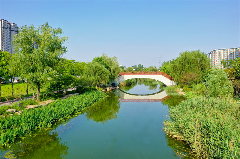 6月9日,天氣晴朗,澗水河畔草木蒼翠,風(fēng)景如畫。