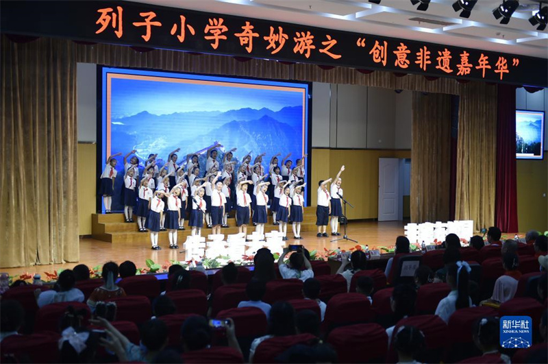 6月8日,學(xué)生們在活動現(xiàn)場合唱表演。當(dāng)日,一場主題為“創(chuàng)意非遺嘉年華”的非遺項(xiàng)目展示體驗(yàn)活動在河南省鄭州經(jīng)濟(jì)技術(shù)開發(fā)區(qū)列子小學(xué)舉行。作為河南省非物質(zhì)文化遺產(chǎn)社會傳承基地,列子小學(xué)在活動現(xiàn)場設(shè)置非遺工坊體驗(yàn)、非遺節(jié)目展演等內(nèi)容,讓參與活動的嘉賓和學(xué)生沉浸式感受傳統(tǒng)文化魅力,推動非物質(zhì)文化遺產(chǎn)的傳承與發(fā)展。