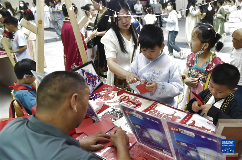 6月8日,學(xué)生們在活動現(xiàn)場體驗(yàn)剪紙技藝。當(dāng)日,一場主題為“創(chuàng)意非遺嘉年華”的非遺項(xiàng)目展示體驗(yàn)活動在河南省鄭州經(jīng)濟(jì)技術(shù)開發(fā)區(qū)列子小學(xué)舉行。作為河南省非物質(zhì)文化遺產(chǎn)社會傳承基地,列子小學(xué)在活動現(xiàn)場設(shè)置非遺工坊體驗(yàn)、非遺節(jié)目展演等內(nèi)容,讓參與活動的嘉賓和學(xué)生沉浸式感受傳統(tǒng)文化魅力,推動非物質(zhì)文化遺產(chǎn)的傳承與發(fā)展。