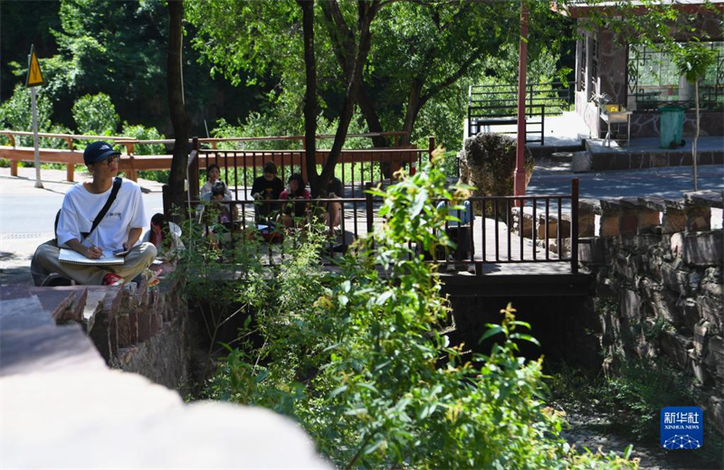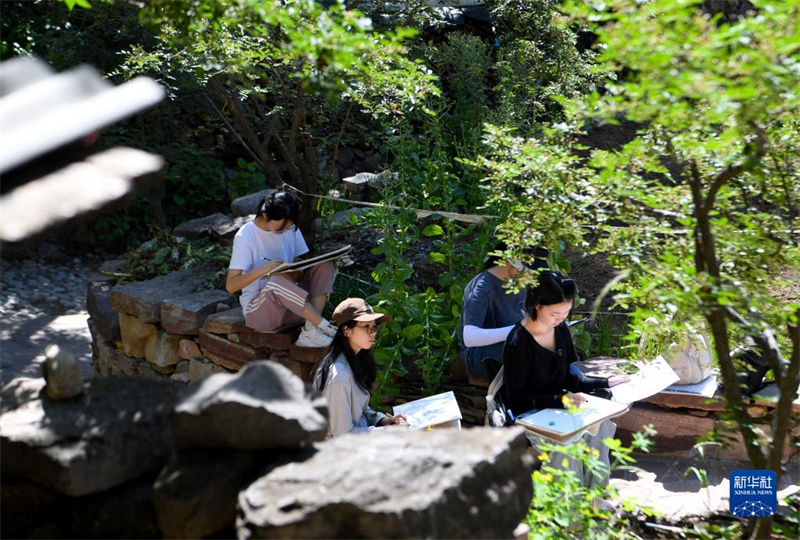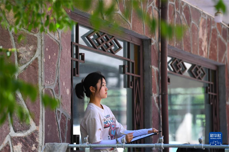 6月9日,學(xué)生在河南安陽林州市石板巖鎮(zhèn)三畝地村寫生。