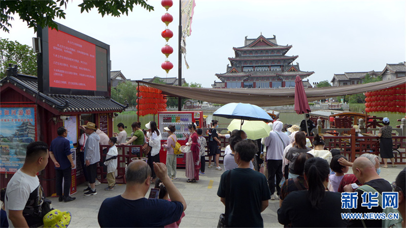 6月11日,河南省開封市七盛角碼頭,人們準(zhǔn)備乘坐“水上巴士”游覽大宋御河。