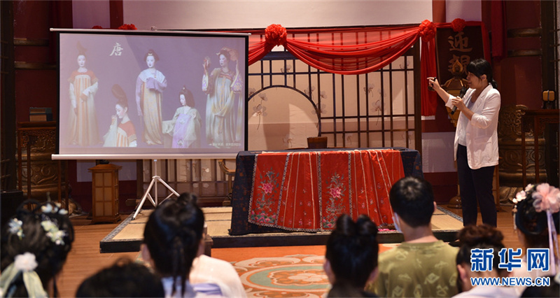 6月10日,中原工學院的教師在講解漢服知識。