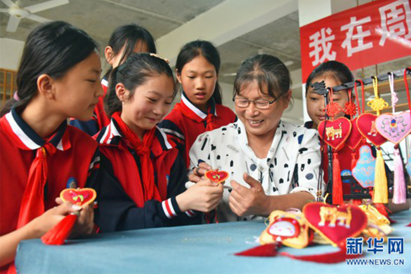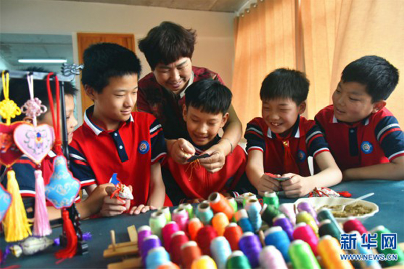 6月16日,河南省社旗縣大馮營鎮(zhèn)周莊村,孩子們在文化周莊女子非遺工坊老師的指導下學習制作傳統(tǒng)艾草香包。端午節(jié)臨近,河南省社旗縣通過舉辦縫香包、包粽子、端午詩會、書畫展覽等豐富多彩的活動,傳承中華優(yōu)秀傳統(tǒng)文化。新華網(wǎng)發(fā)(申鴻皓 攝)
