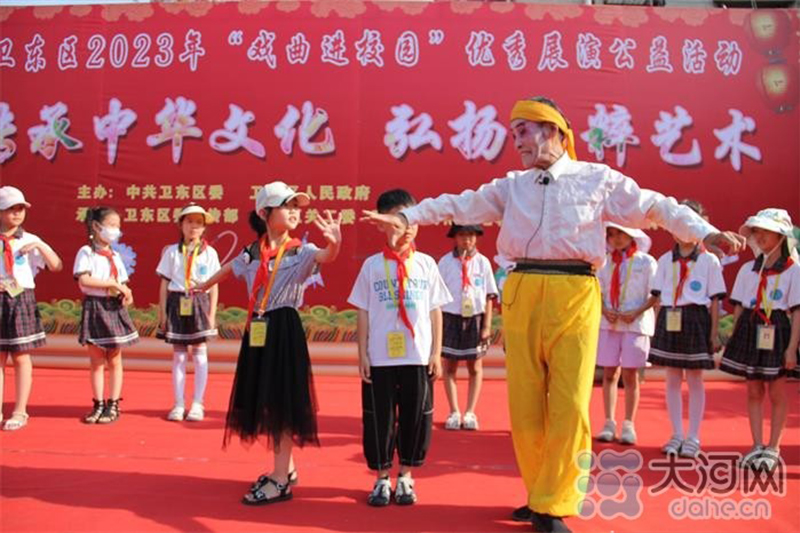 6月15日,平頂山市衛(wèi)東區(qū)關(guān)心下一代工作委員會(huì)、區(qū)文旅局、區(qū)教育體育局等組織的雙鳳劇團(tuán)走進(jìn)平馬路小學(xué),與小學(xué)生互動(dòng),教唱非遺經(jīng)典戲曲。通過戲曲學(xué)習(xí)、戲曲體驗(yàn)、戲曲欣賞等形式,感受戲曲的藝術(shù)魅力。(古國(guó)凡 安坤良/文圖)