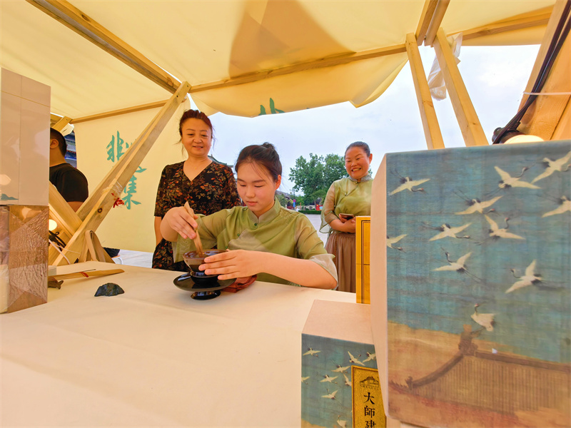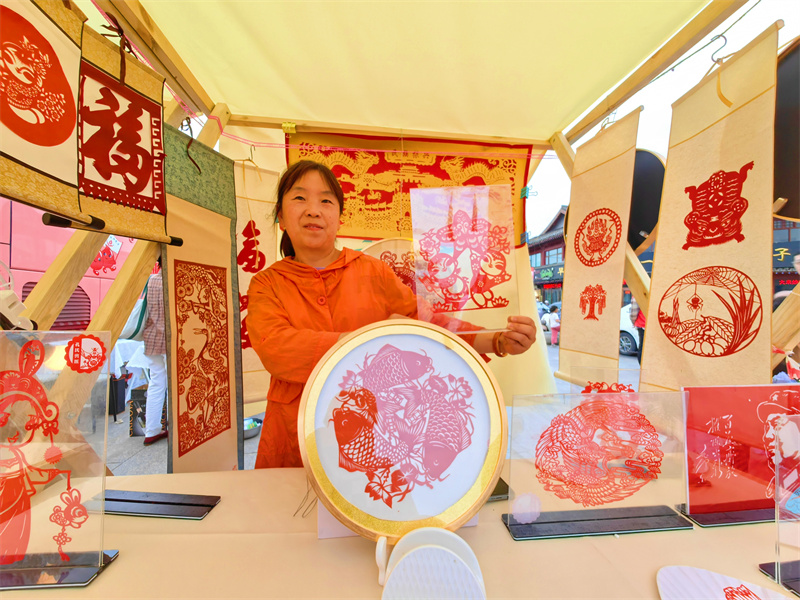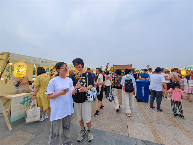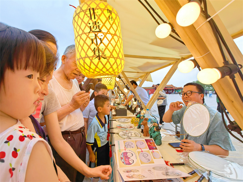 6月16日,在龍亭公園門前廣場,非遺市集攤位上擺滿了特色文創(chuàng)產(chǎn)品,吸引不少市民前來“打卡”,感受非遺魅力。