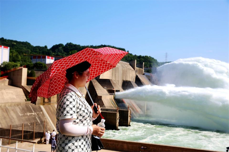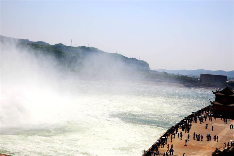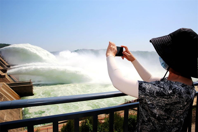 6月23日,游客在小浪底出水口觀看調(diào)水調(diào)沙。端午假期,適逢黃河小浪底2023年汛前黃河調(diào)水調(diào)沙。人們走出家門,參觀小浪底景區(qū),感受黃河之水天上來(lái)的磅礴氣勢(shì)。(大河特約攝影師賈書琛文/圖)