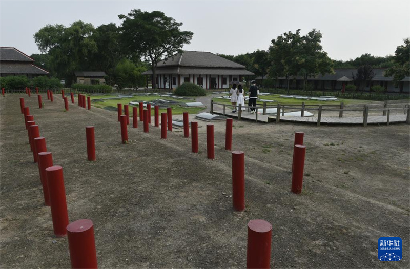 6月26日,游人在位于河南省安陽市的殷墟遺址游覽。